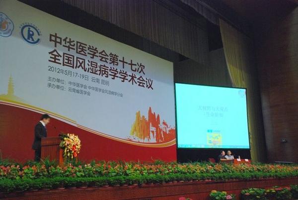 “中华医学会第十七次全国风湿病学术会议”于2012年5月17日至19日在云南省昆明市海埂会堂成功召开。约1500位风湿免疫科医生/代表出席本次会议。大会特邀国内外众多风湿免疫科和其他专科的知名专家做精彩的专题报告。会议围绕各类风湿免疫性疾病的预防、诊断、治疗及国内外最新医学进展进行了学术交流,总结临床和基础研究经验。会场座无虚席,学术气氛热烈。