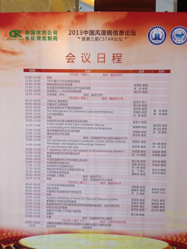 “2013中国风湿病信息论坛暨第三届CSTAR论坛”于2013年7月18-20日在北京举行。