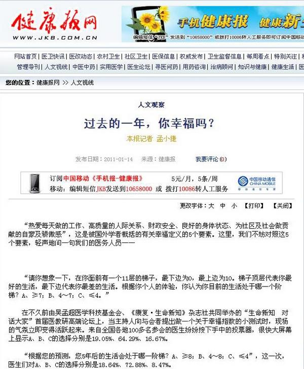 1、《健康报》原文链接:过去的一年,你幸福吗?